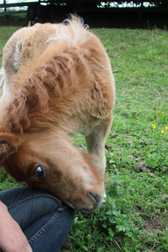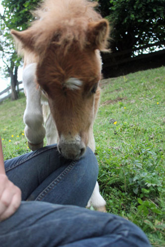 ...Hubba Bubba ist ein sehr zutrauliches Fohlen. Er liebt es gekuschelt zu werden.